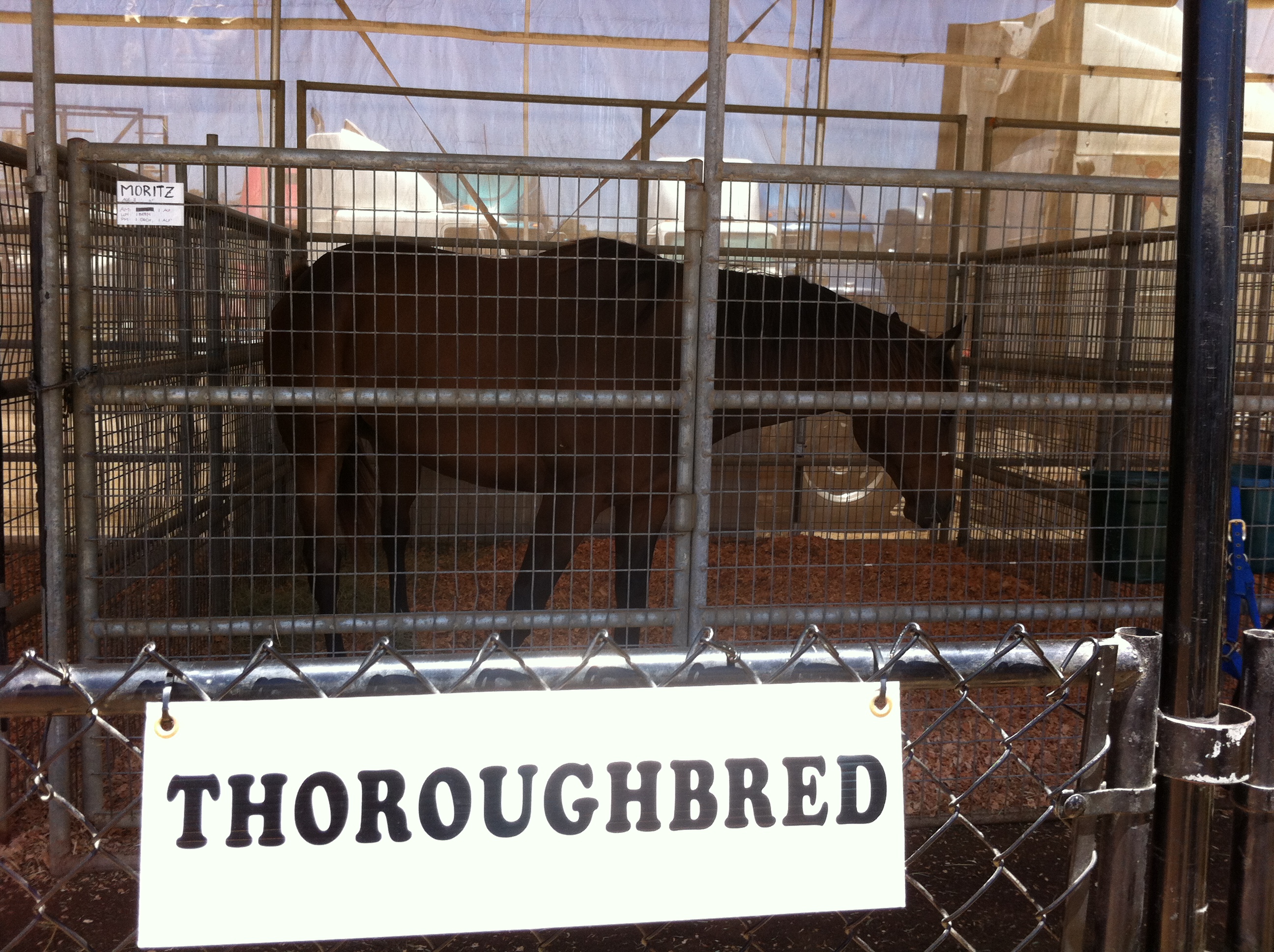 There are some animals out here for the kids to see and enjoy, such as horses, pigs, goats and chickens. Chandi and Luca had a lot of fun seeing the horses – here’s just one of the horses people can learn about – there were donkeys, ponies and many other kinds of breeds of horses too. Also, there’s a safe way to pretend that you are riding on a horse too!